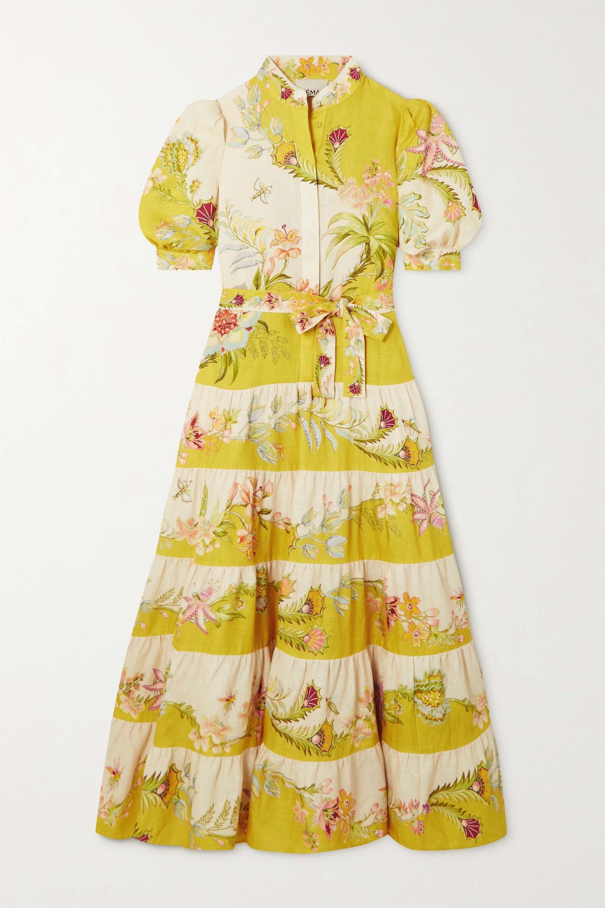 The Tiered Midi Dress in Lemon / Cream